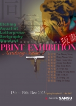 - 갤러리 산수 판화아카데미 1기 9명 작가님들의 6개월간 제작한 다양한 판화 작품들을 선별하여 그룹전을 진행합니다.출품한 작품의 대부분은 동판화, 아쿼틴트, 레터프레스, 세리그래피, 목판화등으로 이루어져 다양한 볼거리를 제...