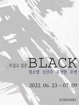 [Black_무겁고 깊은]展(참여작가: 권소영, 신선주, 유정현, 주연)은 흰 화면에 검은색을 주되게 사용한 작품들로 구성될 예정입니다.전시장의 흰 벽과 작품의 여백이 주는 연결 색으로써 검정색과 흰색의 조화를 고려했습니다. 작가들의 다양한 작품 재료인 먹,콘테,아크릴,안료 등으로 만들어내는 저마다의 ‘무겁고, 깊은’ 작품들이 전시 될 예정입니다.