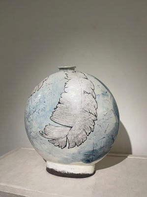 그의 대표작 중 하나인 〈분청 은채 파초 편병〉 시리즈는 몸체가 편평하고 납작한 모양이 독특한 편병에 청화와 은채로 파초를 새긴 작품으로, 전통 고가구 위에 배치해 고풍스러운 분위기를 한껏 더했다. 사각기에 파초를 새긴 〈파초〉 시리즈도 선보이는데, 작품 여러 점을 한데 모아 숲처럼 연출한 것이 인상 깊다. 이번 전시는 전통과 자연의 조화를 특징 삼아 분청사기가 갖고 있는 편안한 미감을 한껏 고취시킨다.