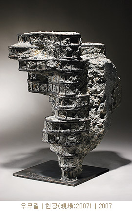 이처럼 우무길의 작업은 일종의 유사 고고학적 발굴의 형태를 취한다는 점에서 학제간 연구방식으로 나타난 근래의 한 경향을 예시해준다. 전통적인 조각의 문법과 고고학의 인문학이 만나지는 경계 위에서 수행되고 있는 것이다. 플라스틱 소재의 일상품을 소재로 한 유사오브제 작업이란 점에서 소위 오래된 미래로 나타난 문명사적 비전을 앞질러 엿보게 하며, 집을 소재로 한 일련의 작업들에선 집으로 상징되는 자기 정체성의 일면을 드러낸다. 거푸집 속에서 끄집어낸 집 형상을 통해 잠재적인 나와 대면케 해주고, 노끈으로 연결된 집 형상을 통해서는 타자와의 관계를 떠올려준다. 무엇보다도 이 모든 의미론적 성분이나 지점들이 전통적인 직조를 통해 환기되고 암시된다는 점에서 그 의미가 돋보인다.