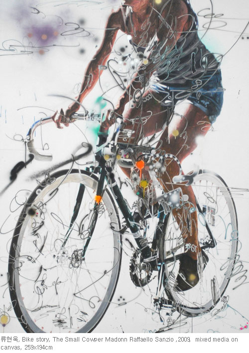 작가 류현욱은 서로 다른 layer들을 교차시키는 에어 페인팅(air painting) 작업으로 중층적인 의미와 표현을 의도한다. 이 방식은 재료의 성격과 본성이 표면에 밀착되지 않는 부유하는 듯한 허무함을 내보이는데, 역사의 한 시점이나 개인의 기억 등에서 이끌려 나온 이미지들이 부유하듯 흩어져 있는 화면을 구성하기에 더 없이 적절하다. 작가는 이러한 기억의 분절, 함몰, 파괴의 과정을 통해 의미의 객체화와 재생성, 확장으로 나아가고 있다.