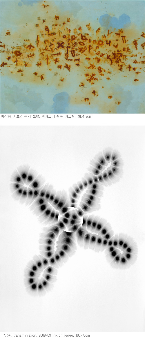■ 전체 전시의 기반이 된 신범순 교수의 암각화와 거석문명을 바라보고 접근하는 방식을 다른 각도에서 생각해보면, 여느 사람들의 평범한 시각을 넘어 비가시적인 형상 속에서 가시적인 것들을 보려는 것이라 할 수 있을 것이다. 작가들이 세상을 바라보는 방식도 이와 다르지 않을 것이다. 한 인문학자가 자신의 영역을 넓혀 세상의 또 다른 근원에 대한 시선을 던지듯, 지금 현재의 작가들이 마찬가지 방식으로 세상을 다르게 바라보고 사유하고 있음을 확인하는 것, 이번 전시가 가진 또 다른 의미들 일 수 있을 것이다. 예술은 어떤 면에서 지금의 주어진 시대를 초극하려는 몸짓이고, 이 속에서 시대의 순차적인 흐름을 넘나들기도 한다.